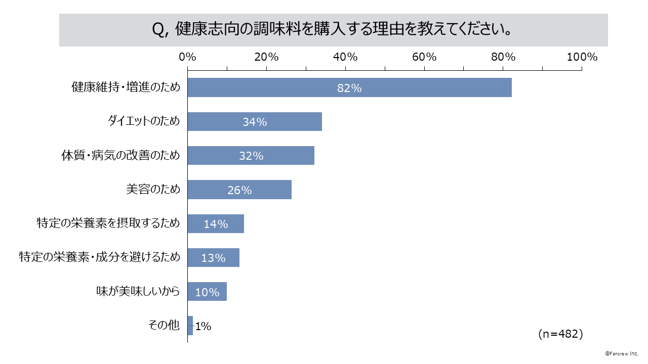 2.健康志向の調味料を購入する理由は「健康維持・増進のため」82%