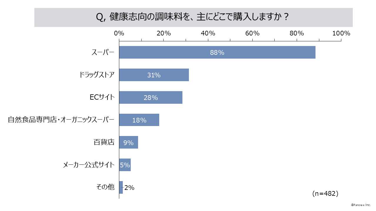 - 健康志向の調味料を購入する場所は「スーパー」88%