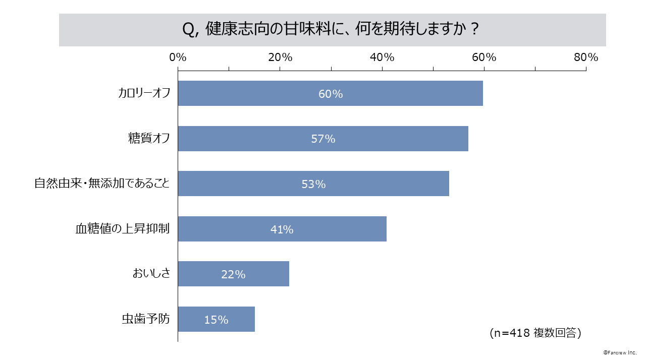 - 健康志向の甘味料に期待することは「カロリーオフ」60%