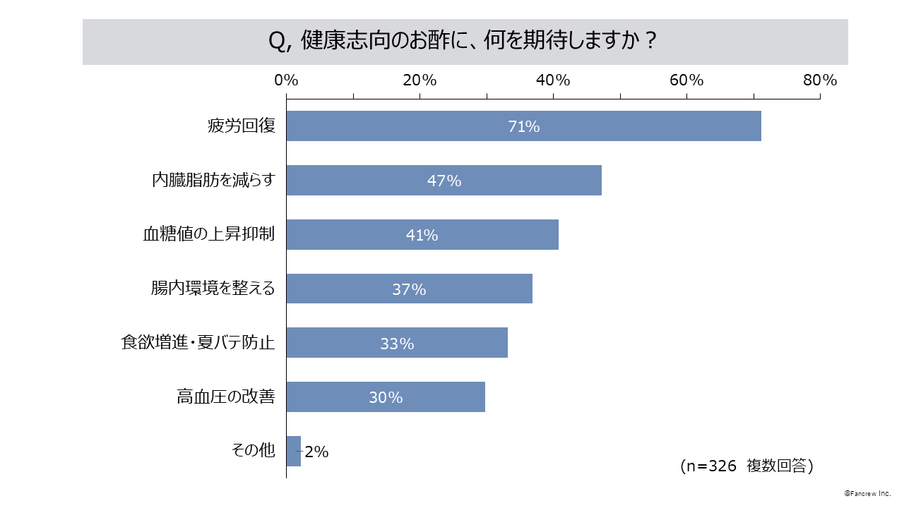 - 健康志向のお酢に期待することは「疲労回復」71%