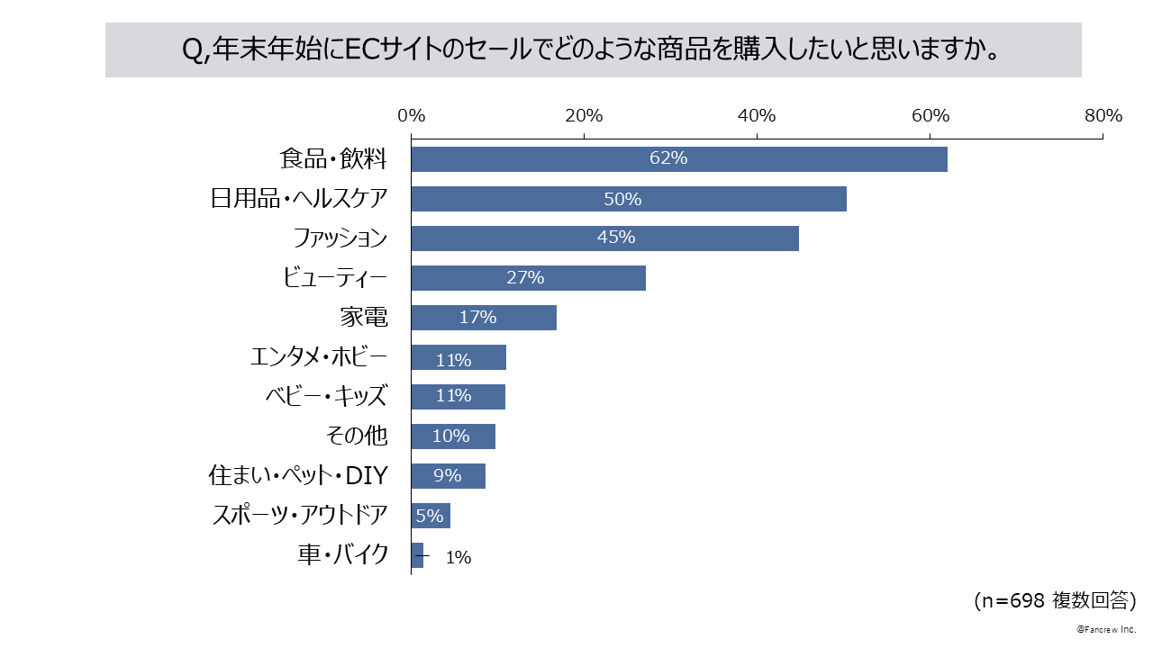 3. 年末年始にECサイトのセールを利用したい81%、特に購入したい商品は「食品・飲料」62%