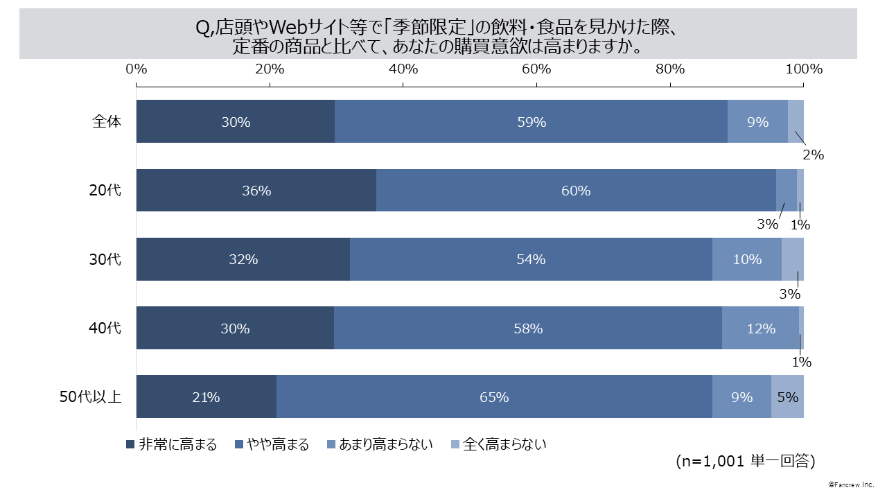 1.「季節限定」の飲料・食品を見かけた際、定番の商品と比べて「購買意欲が高まる」89%(※1)