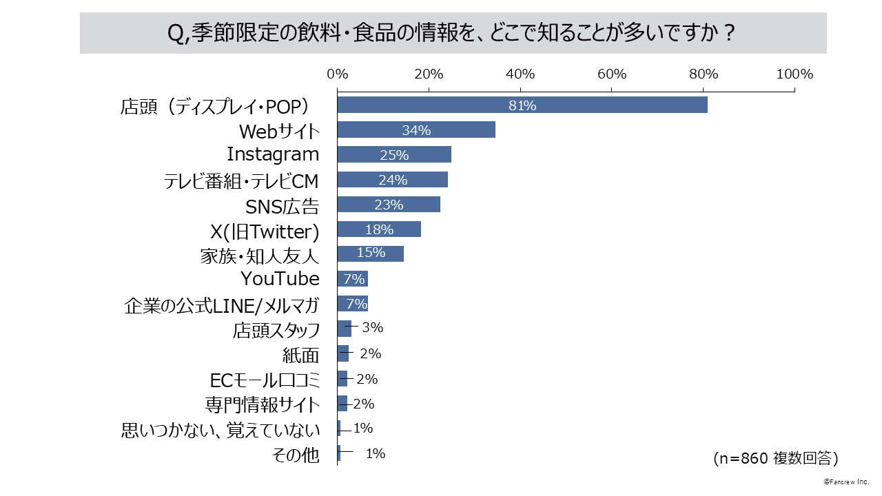 3. 季節限定の飲料・食品の情報収集源は「店頭(ディスプレイ・POP)」81%