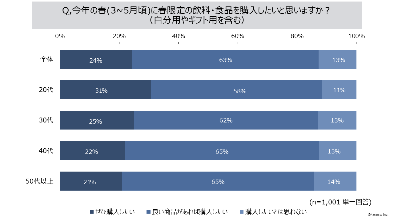 - 今年の春に「春限定の飲料・食品を購入したい」87%