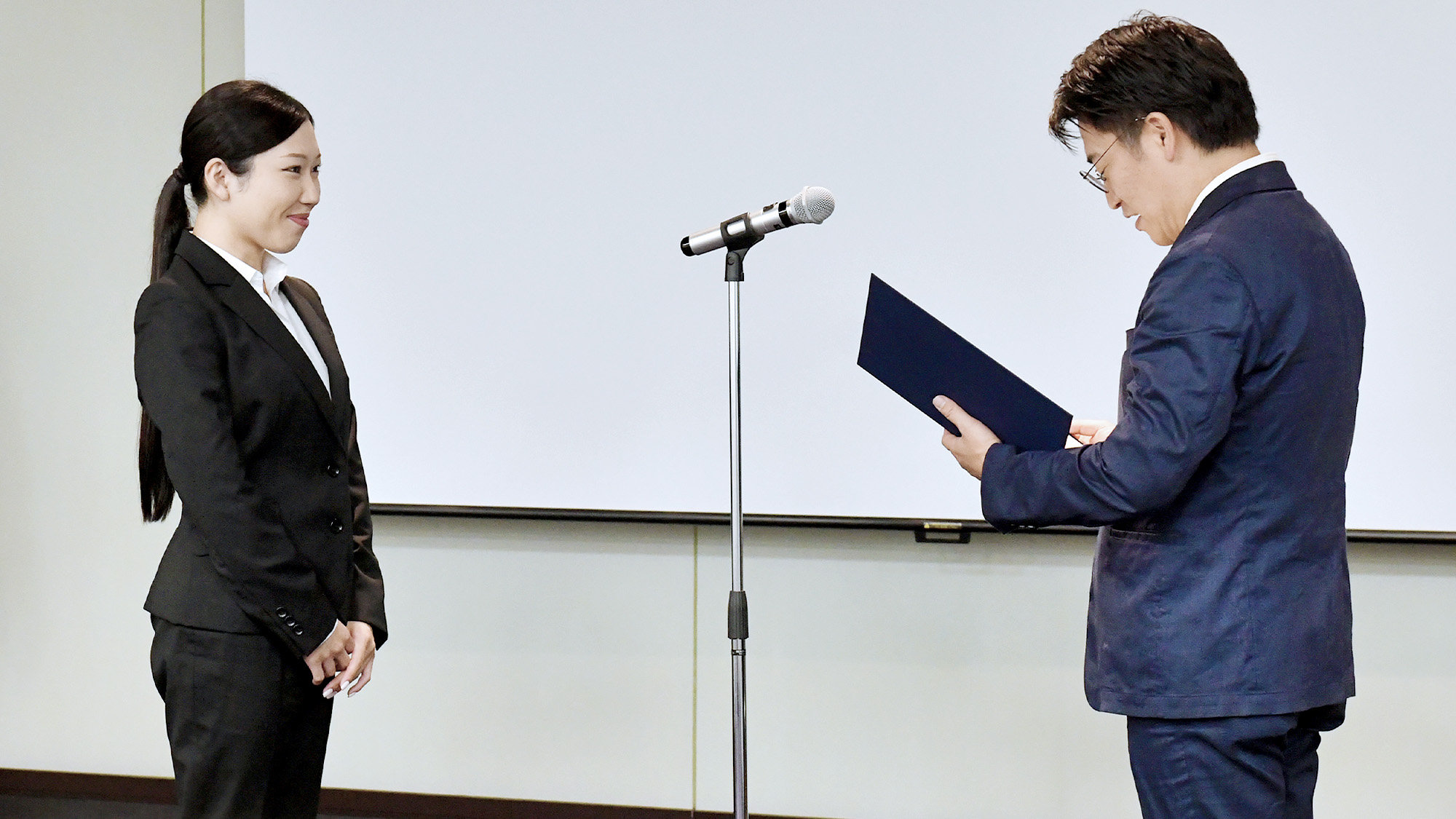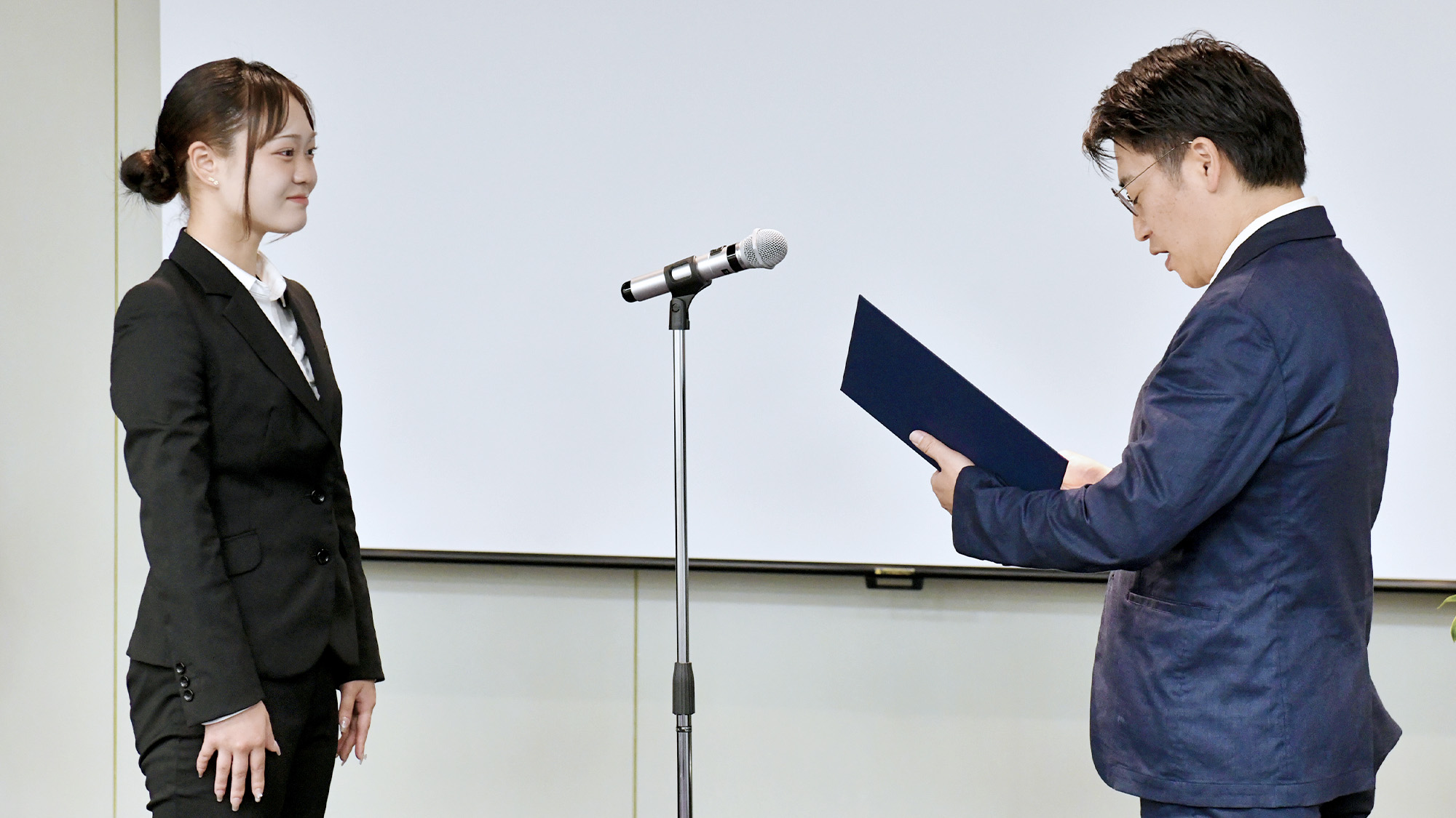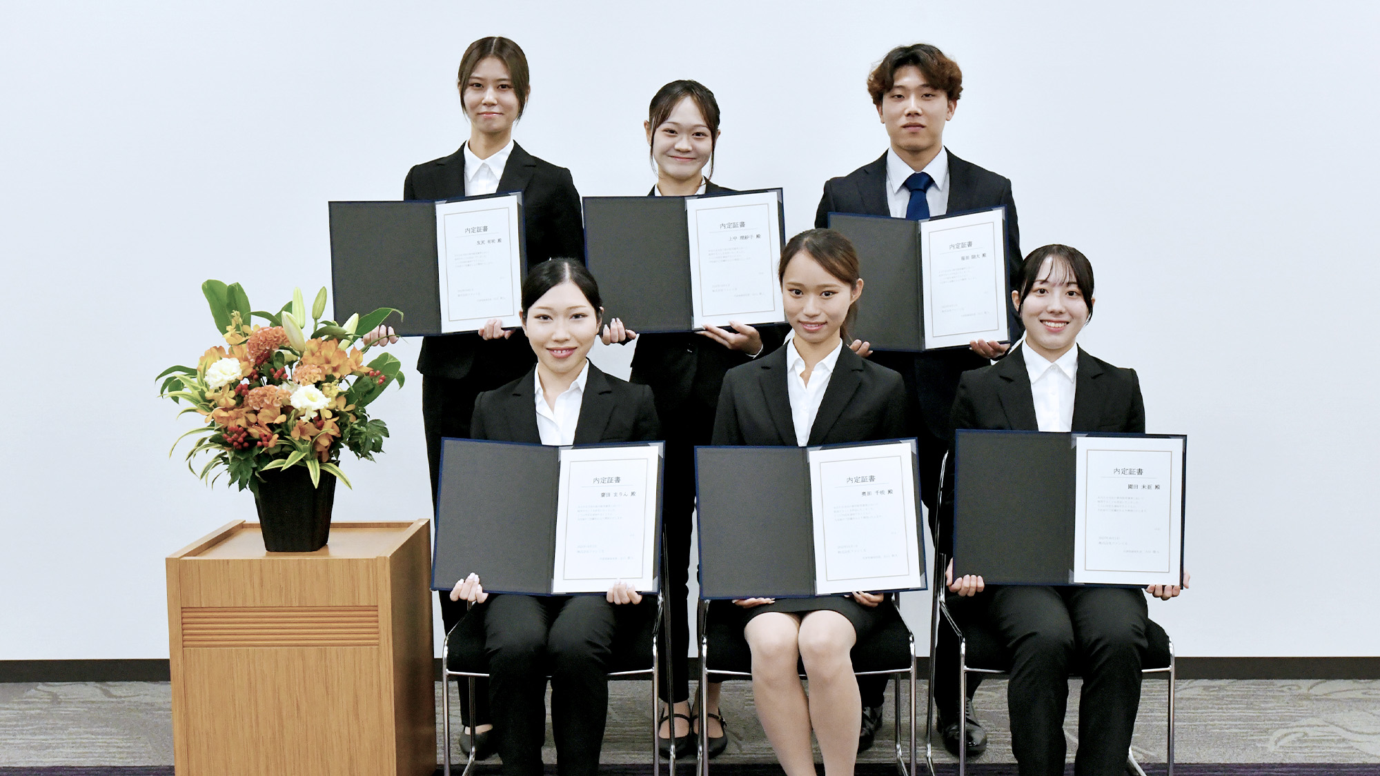続いて内定証書の授与が執り行われました。2026年は、ビジネスプロフェッショナル職5名、開発職1名が入社予定です。