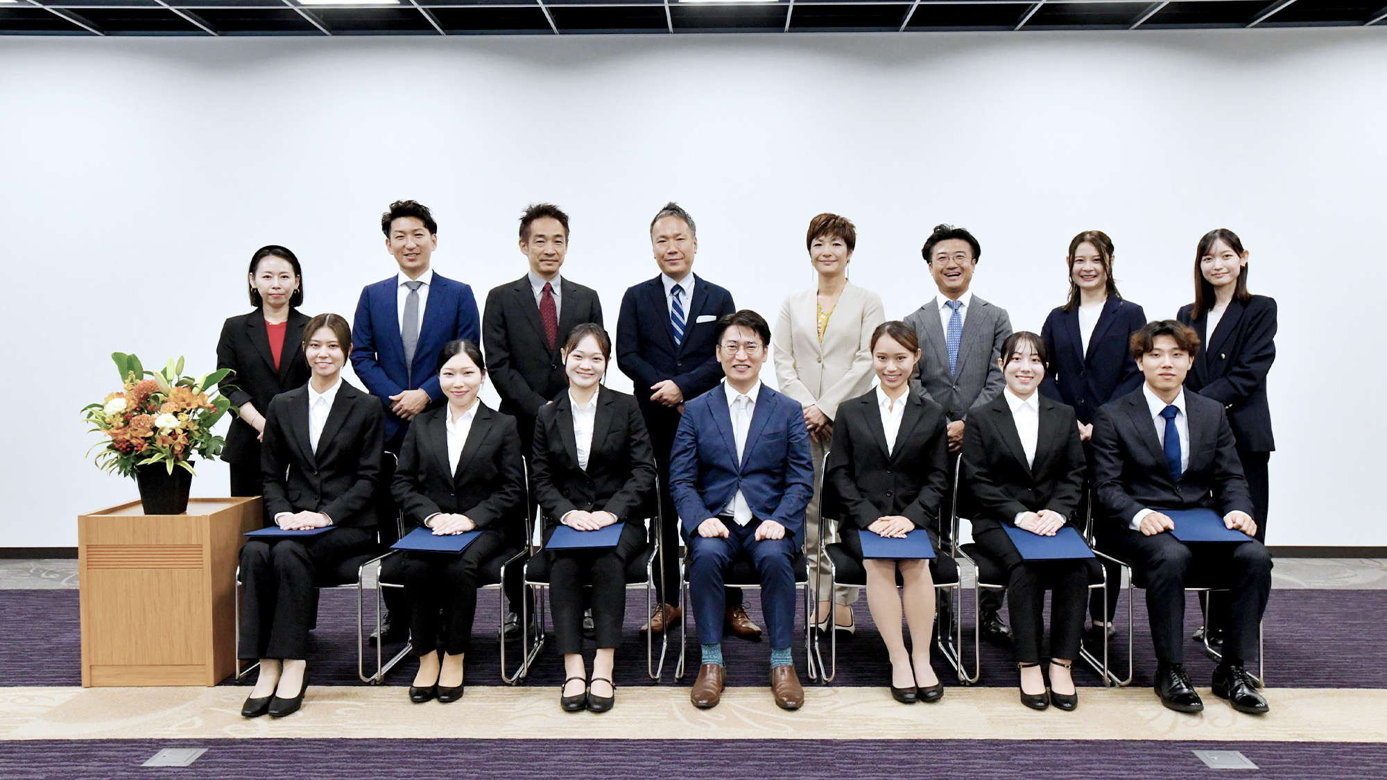 昨年度の採用実績から2倍増となる計6名の内定者を迎え、今年は例年以上に活気に満ちた式典となりました。内定式当日は、内定者6名をファンくる経営陣で温かくお迎え。内定者の皆さんは、新しい環境への期待と緊張感を胸に、内定式に参加されました。