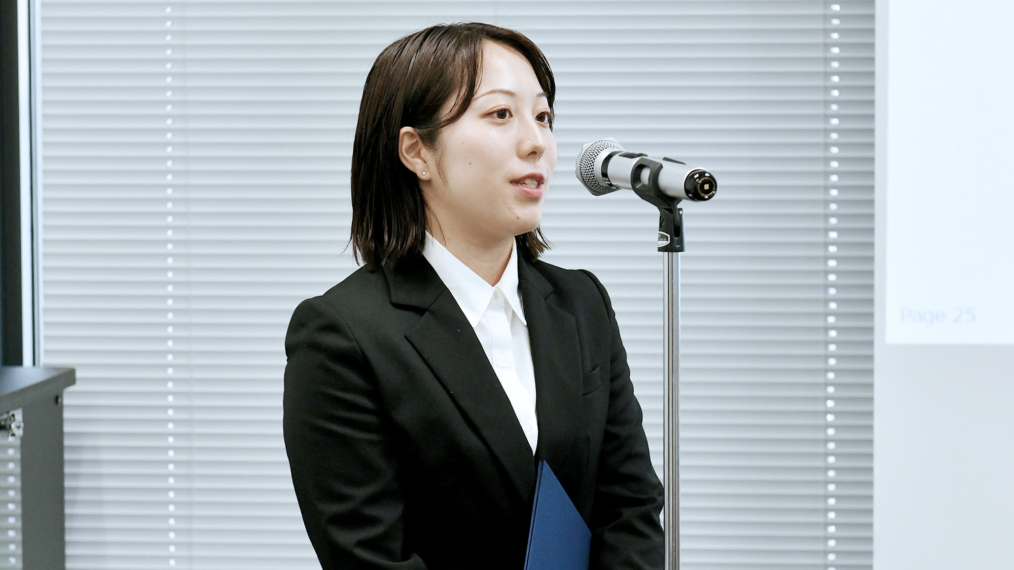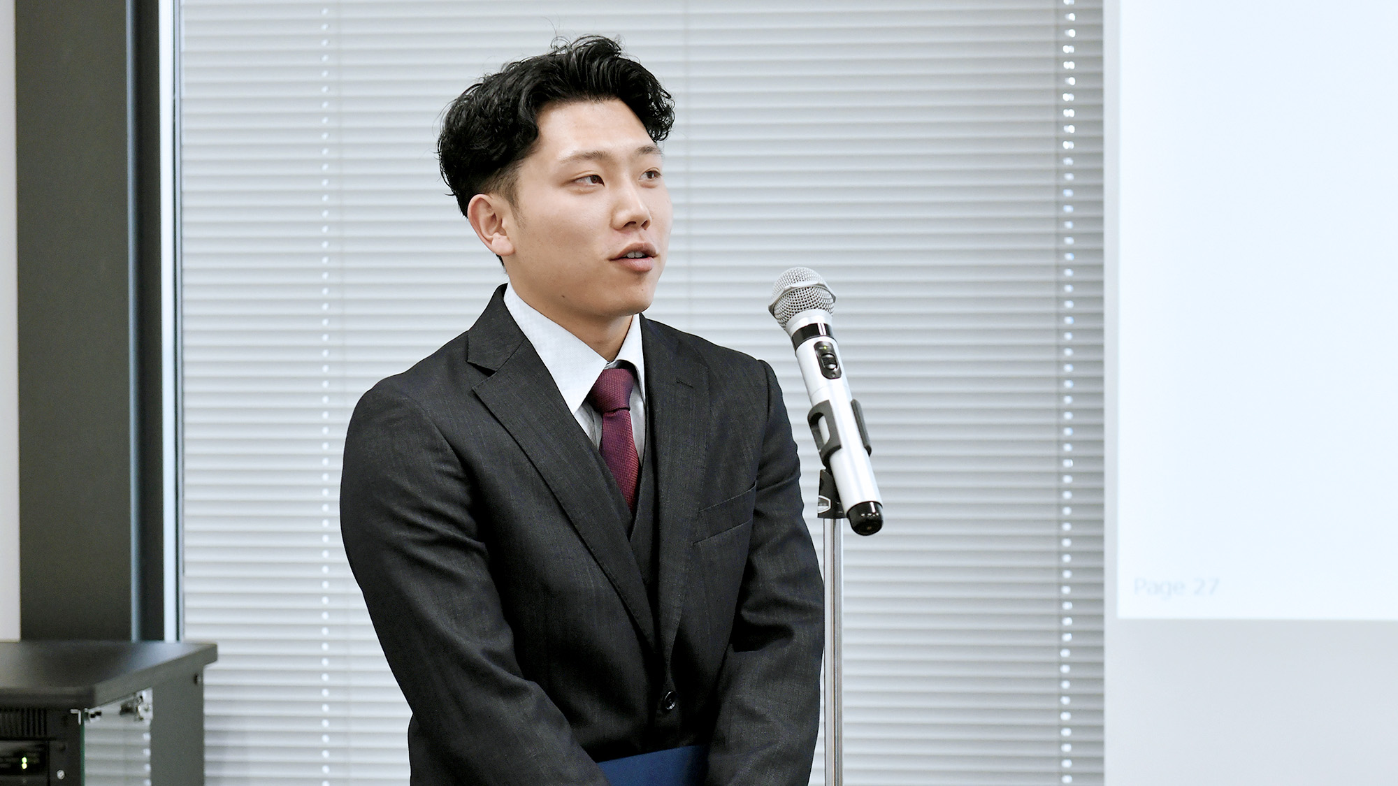 その後の新入社員による挨拶では、一人ひとりが今後の業務に対する意気込みや、社会人としての抱負を力強く語り、会場は温かい拍手に包まれました。